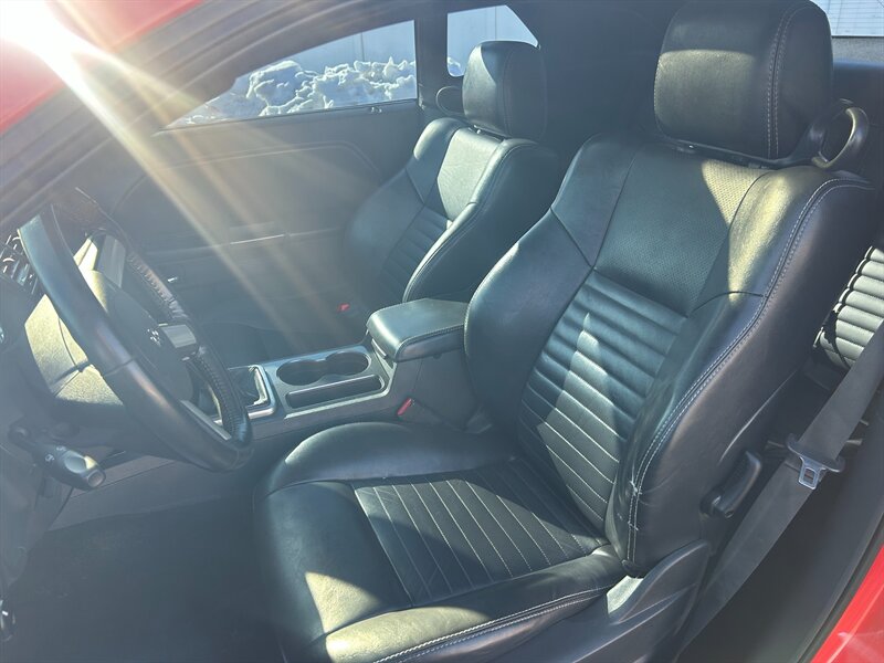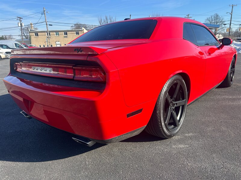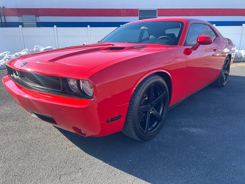 2009 Dodge Challenger R/T in TorRed with Leather-Trimmed Dark Slate Gray interior. Powered by a HEMI 5.7L V8 producing 372 hp and 401 lb-ft of torque, this R/T returns an estimated 16 MPG city and 25 MPG highway and has under 83,000 miles (averaging less than 5,000 miles per year). Factory equipment includes rear-wheel drive with 6-speed manual transmission, power windows/locks/mirrors, remote keyless entry, air conditioning, cruise control, steering-wheel audio controls with AM/FM/CD and auxiliary input, leather-trimmed seats, 60/40 split-folding rear seat, ABS, traction and stability control, front and side airbags with side-curtain protection, tire pressure monitoring, alloy wheels and dual exhaust. Vehicle is in excellent overall condition and has a .