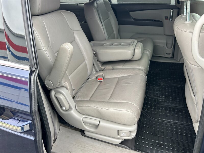This is not a minivan — it’s a full-size, get-it-done machine. Feast your eyes on a 2014 Honda Odyssey Touring finished in Celestial Blue Metallic with a clean Gray interior. Under the hood sits Honda’s proven 3.5L V6 that punches out 248 horsepower and 250 lb-ft of torque, matched to a smooth automatic transmission and engineered to haul people and gear without drama. EPA fuel economy: 19 MPG city / 28 MPG highway. Rugged everyday efficiency, no excuses.